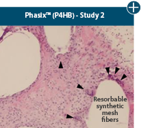 The resorbable synthetics elicited a contractile response at 1 month similar to polypropylene synthetic mesh, without the benefits of reinforcement past their resorption profiles.4-7,9