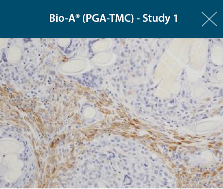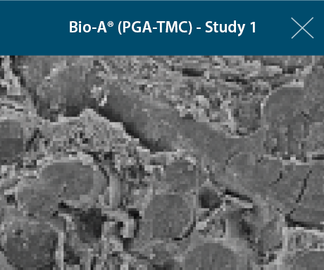 At 1 month, a robust foreign body response was observed with resorbable synthetics in preclinical studies
